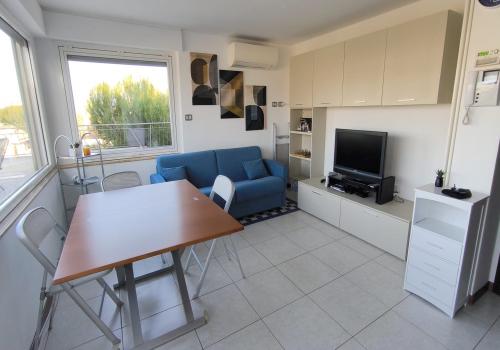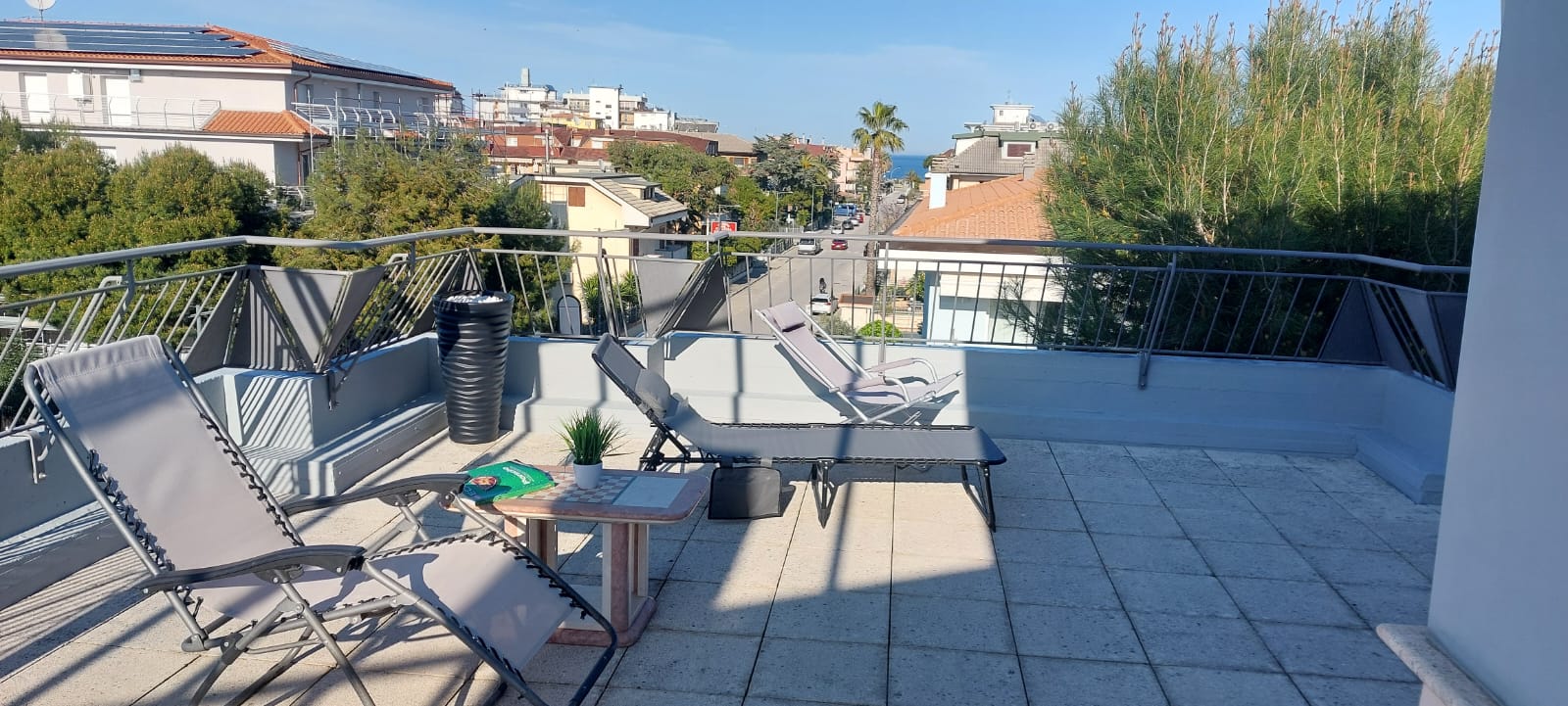 Die Wohnung liegt 200 Meter vom Meer entfernt im südlichen Teil des Zentrums von San Benedetto del Tronto, in einer ruhigen Wohngegend, in der Nähe von Geschäften, Bars, Eisdielen, Restaurants und Pizzerien. Die Wohnung besteht aus einem Schlafzimmer mit Doppelbett, einem Wohnzimmer mit Kochnische und ausziehbarem Doppelbett, einem Badezimmer mit Dusche, einer großen Terrasse mit Panoramablick, ausgestattet mit Liegestühlen, Tisch und Stühlen, einer Dusche und eine Markise. TV, Waschmaschine, Backofen, Geschirrspüler, DVD-Player und Wii-Konsole, WLAN. Klimaanlage (auf Anfrage gegen Aufpreis) 3. Etage mit Aufzug.
