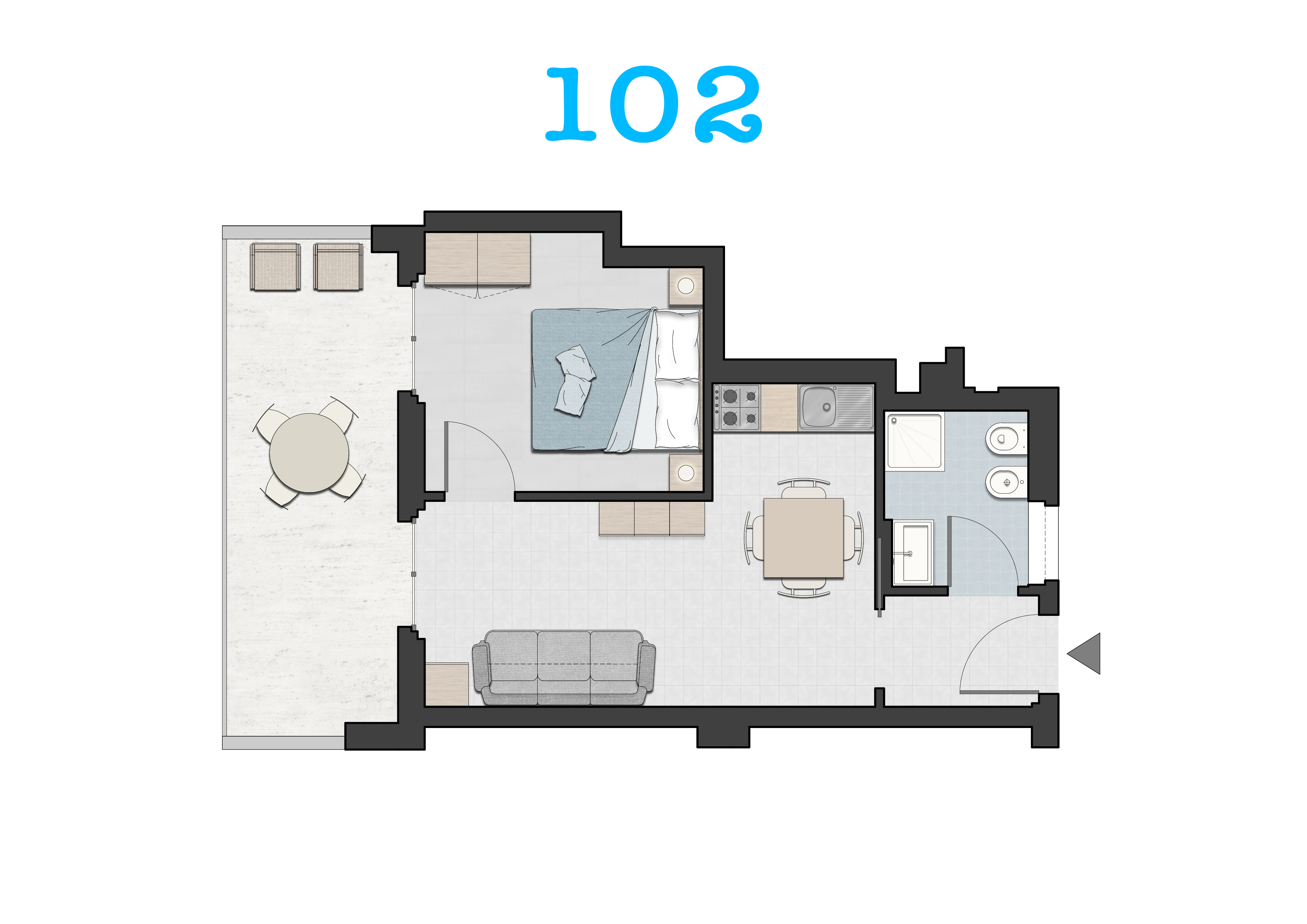Fanno parte di questa tipologia il n° 102 situato al piano terra e il n° 202 situato al primo piano.