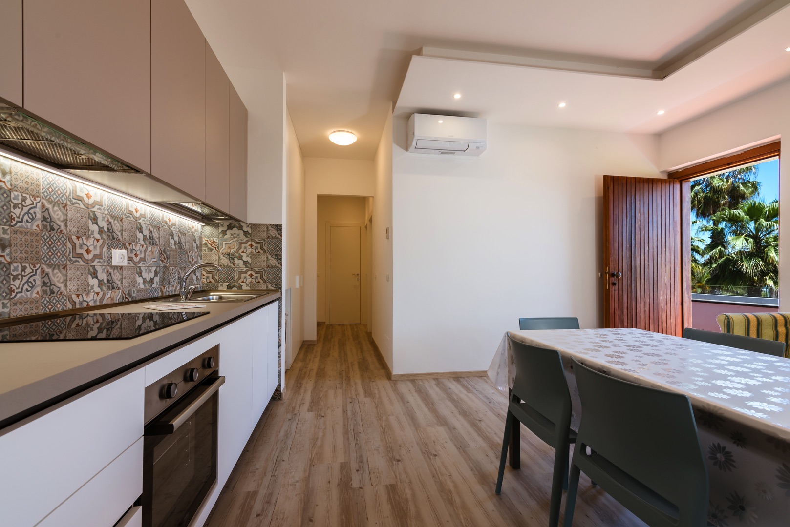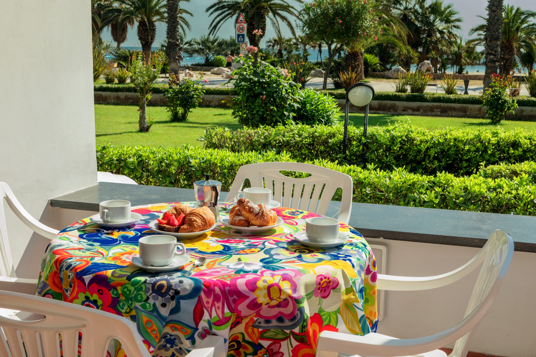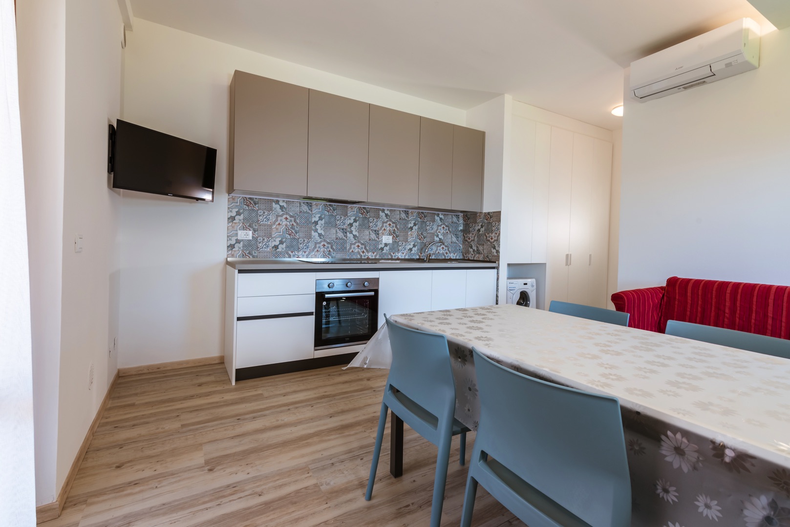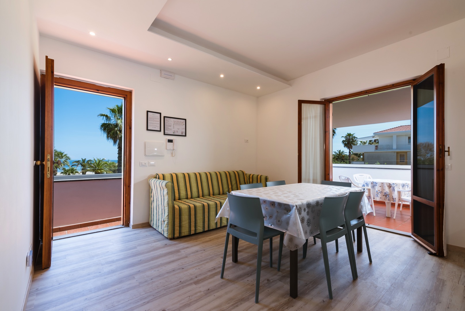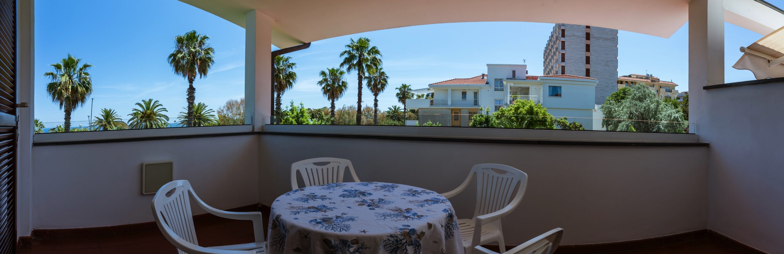 L'appartamento è dotato di aria condizionata, TV, cassaforte, lavatrice e Wi-Fi. L’ampio balcone dalla copertura con tenda da sole con una bella vista mare laterale.