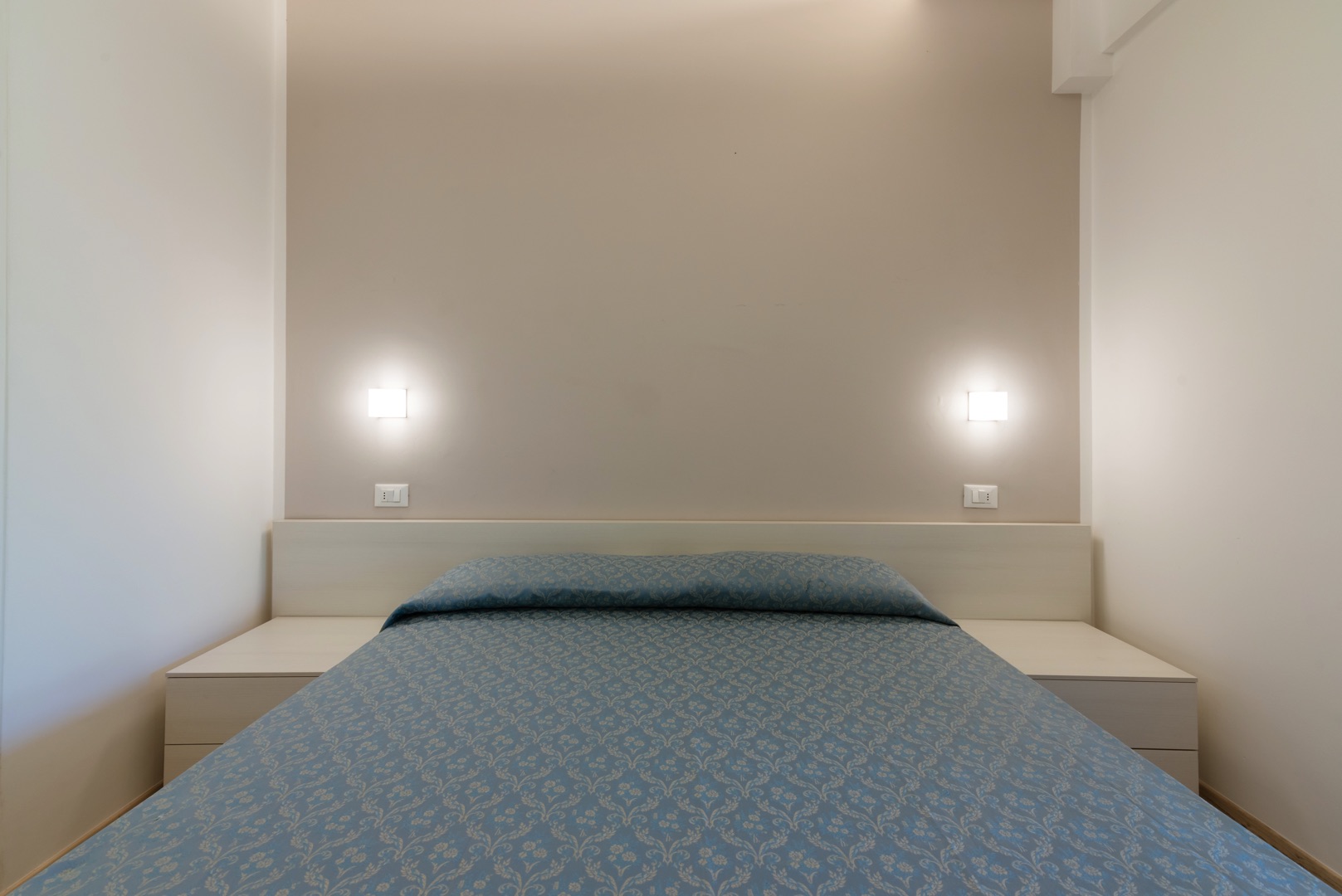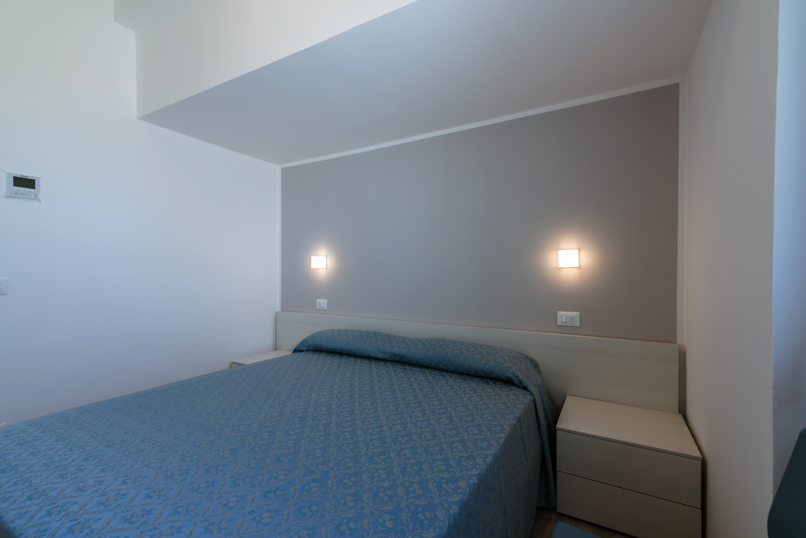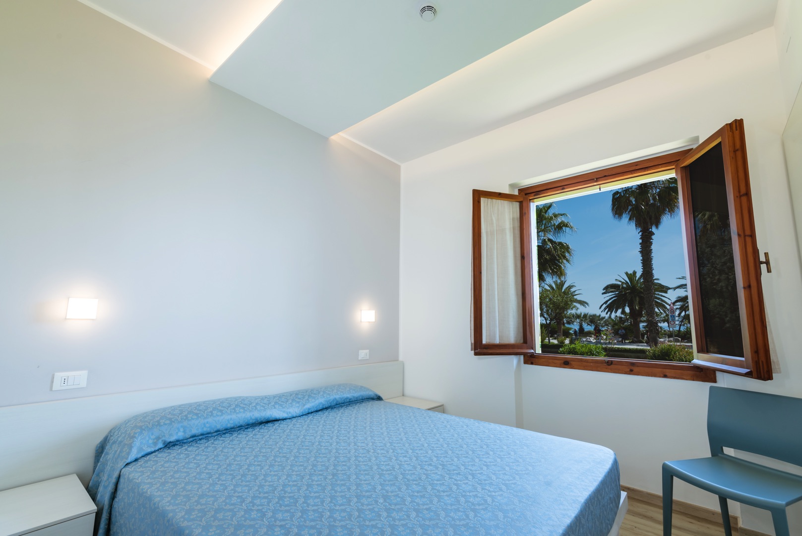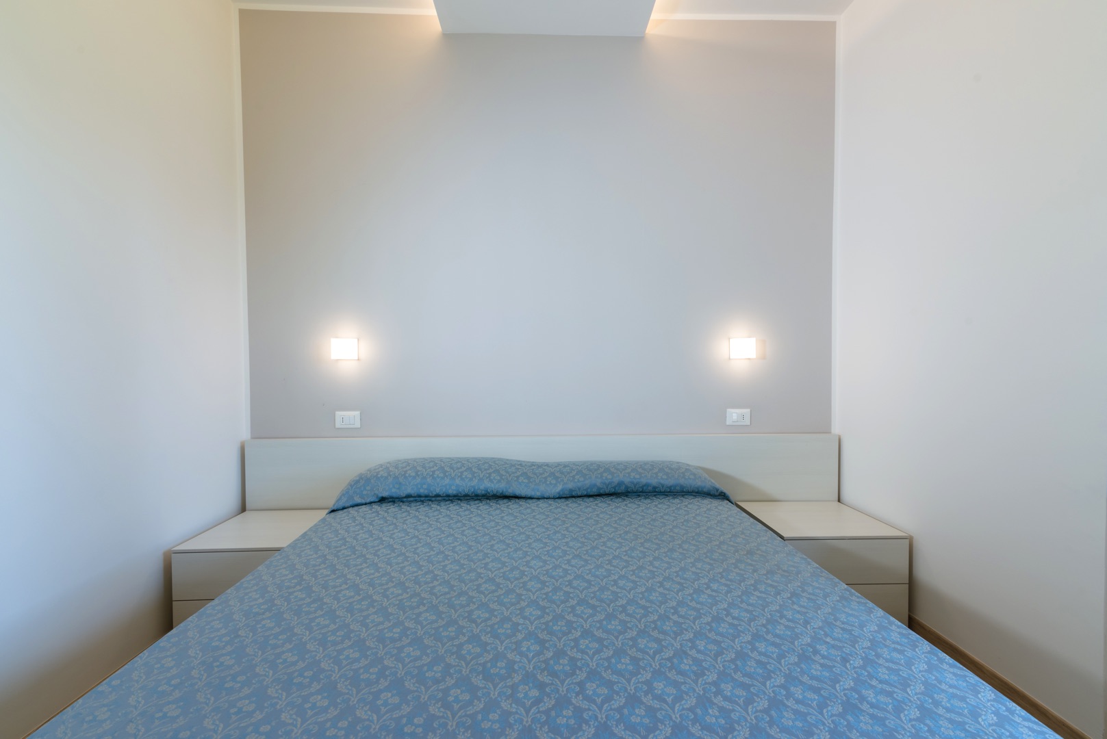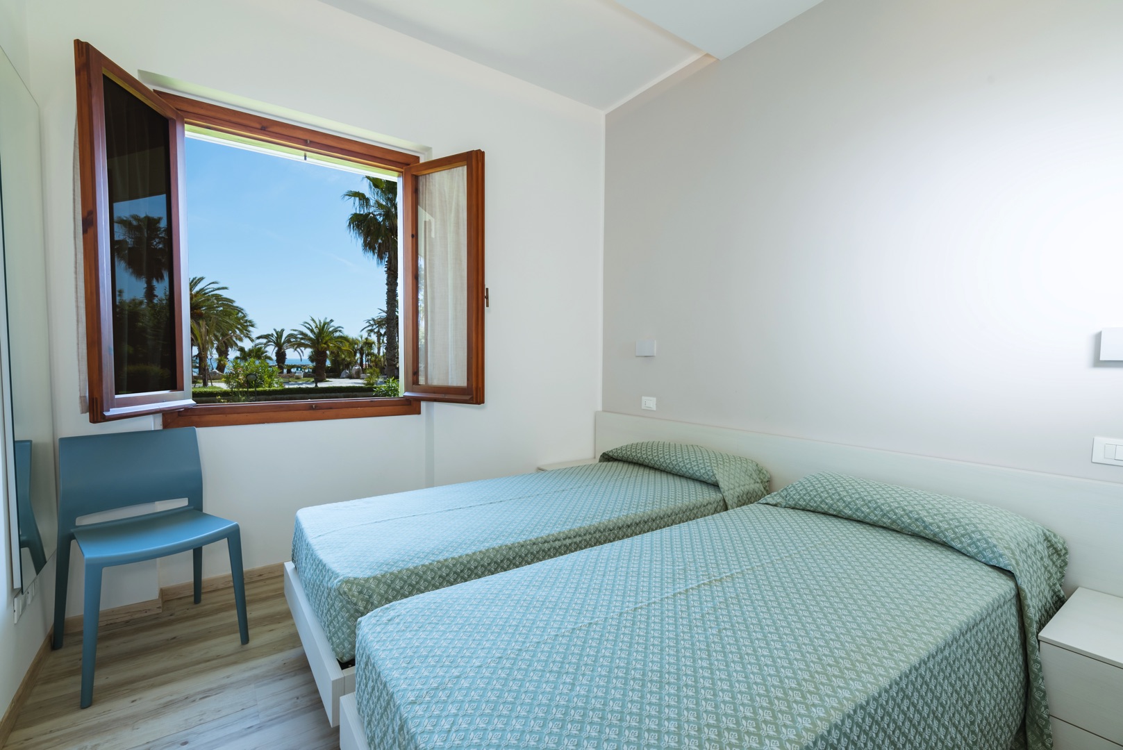 L'appartamento è composto da una camera con letto matrimoniale, una camera con due letti singoli e un bagno con finestra e tutti i comfort (lavandino, doccia, bidet e WC). Soggiorno con divano letto matrimoniale e angolo cottura. L'appartamento è dotato di aria condizionata, TV, cassaforte, lavatrice e Wi-Fi. L'ampio balcone dalla copertura in muratura ha una splendida vista mare.