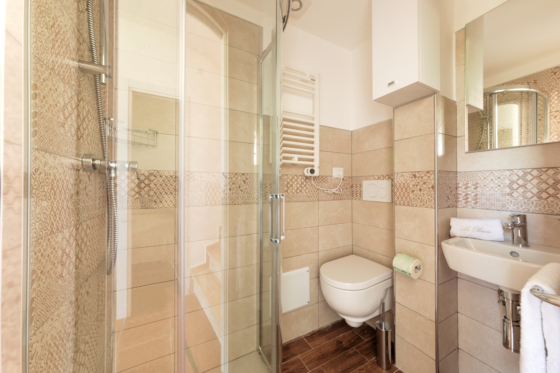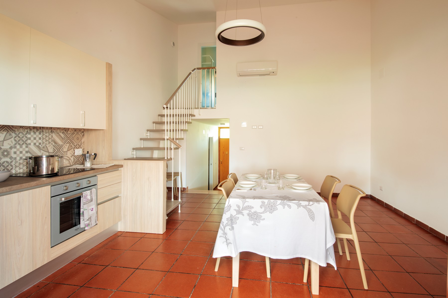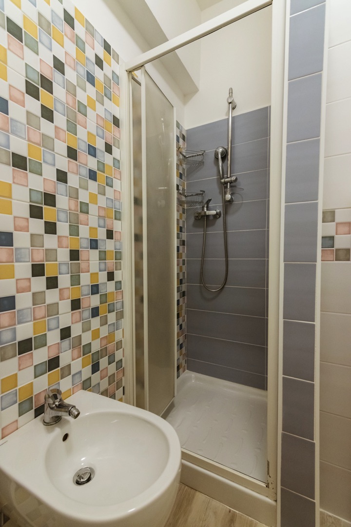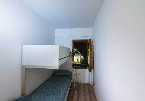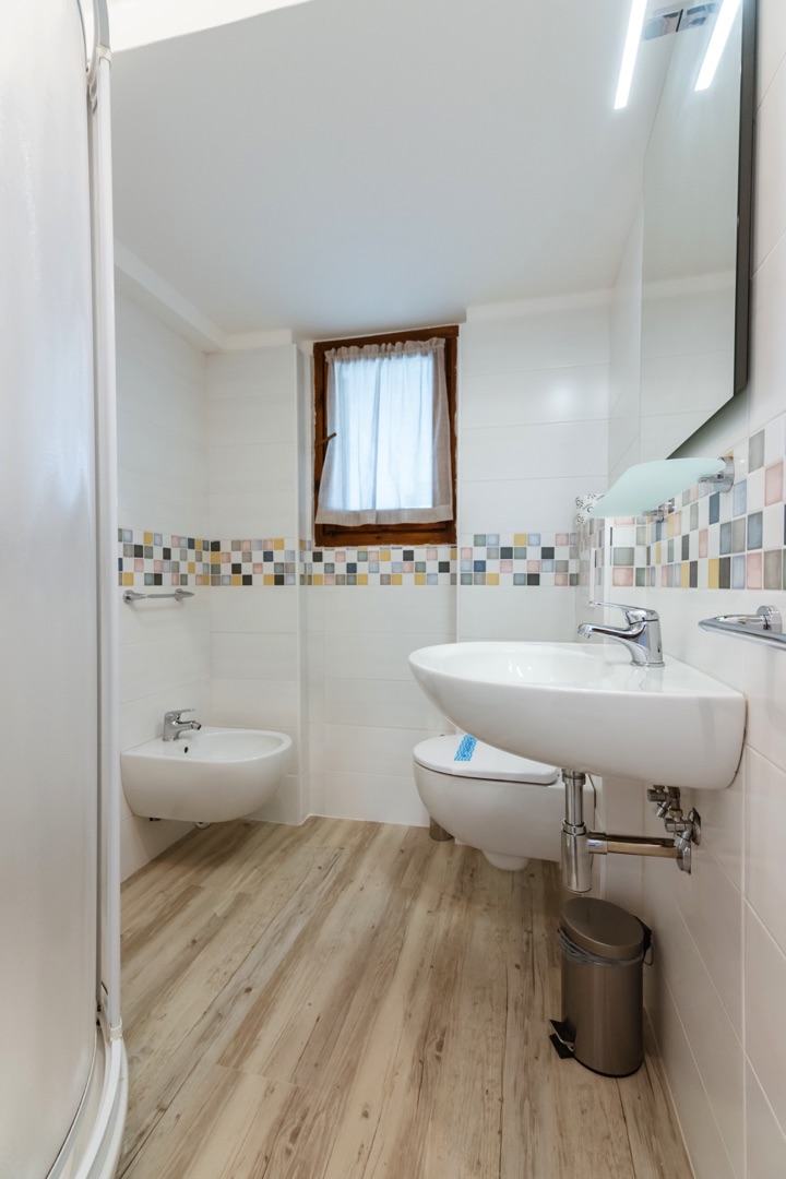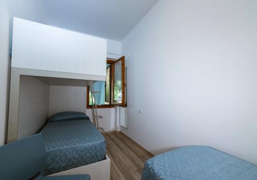 L’appartamento è composto su un livello da una camera con due letti singoli e un piccolo bagno (lavabo, cabina doccia e wc) e soggiorno con divano letto matrimoniale e angolo cottura con piano a induzione.Al secondo livello una camera matrimoniale + un letto a scomparsa e un secondo bagno completo di tutti i servizi (lavabo, cabina doccia, bidet e wc).