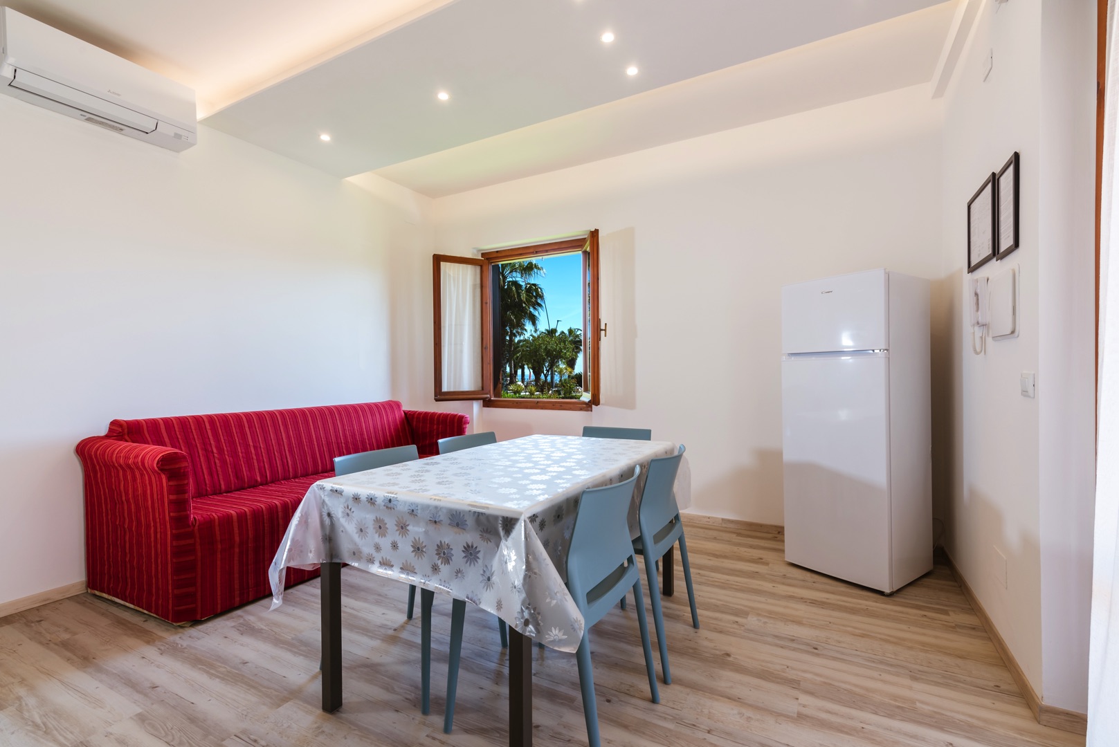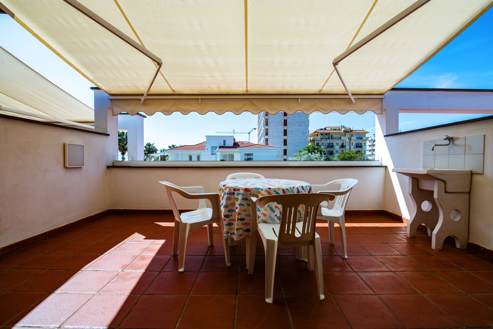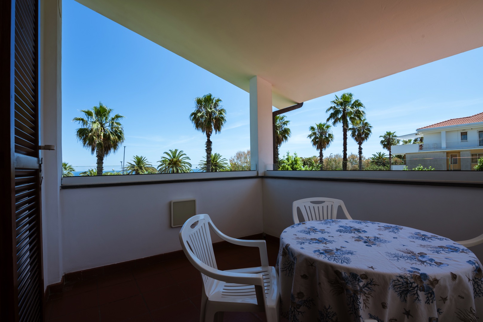 L'appartamento è dotato di aria condizionata, TV, cassaforte, lavatrice e Wi-Fi. L’ampio balcone dalla copertura con tenda da sole con una splendida vista mare.
