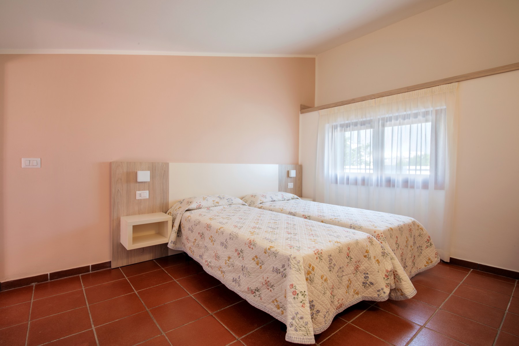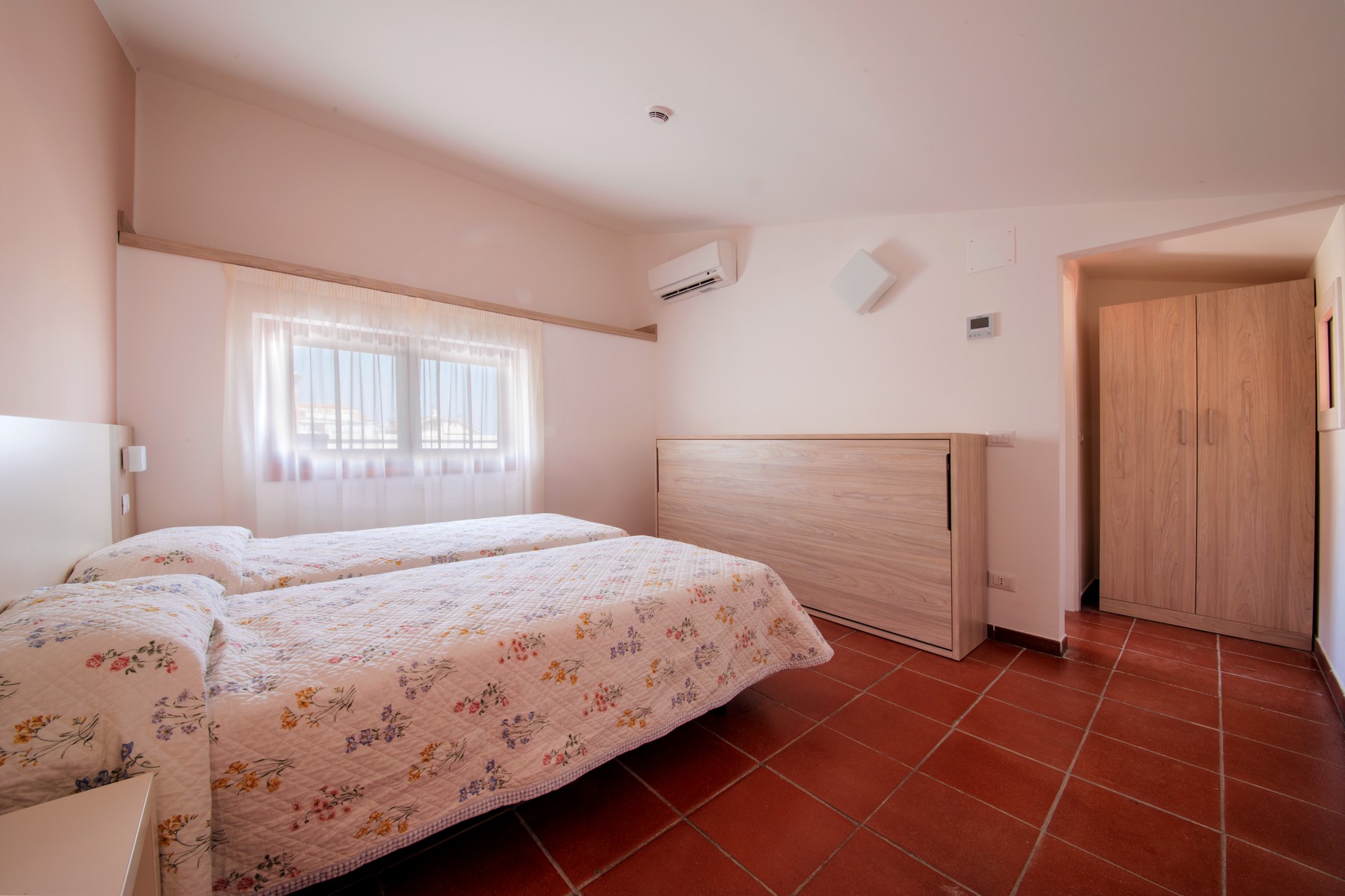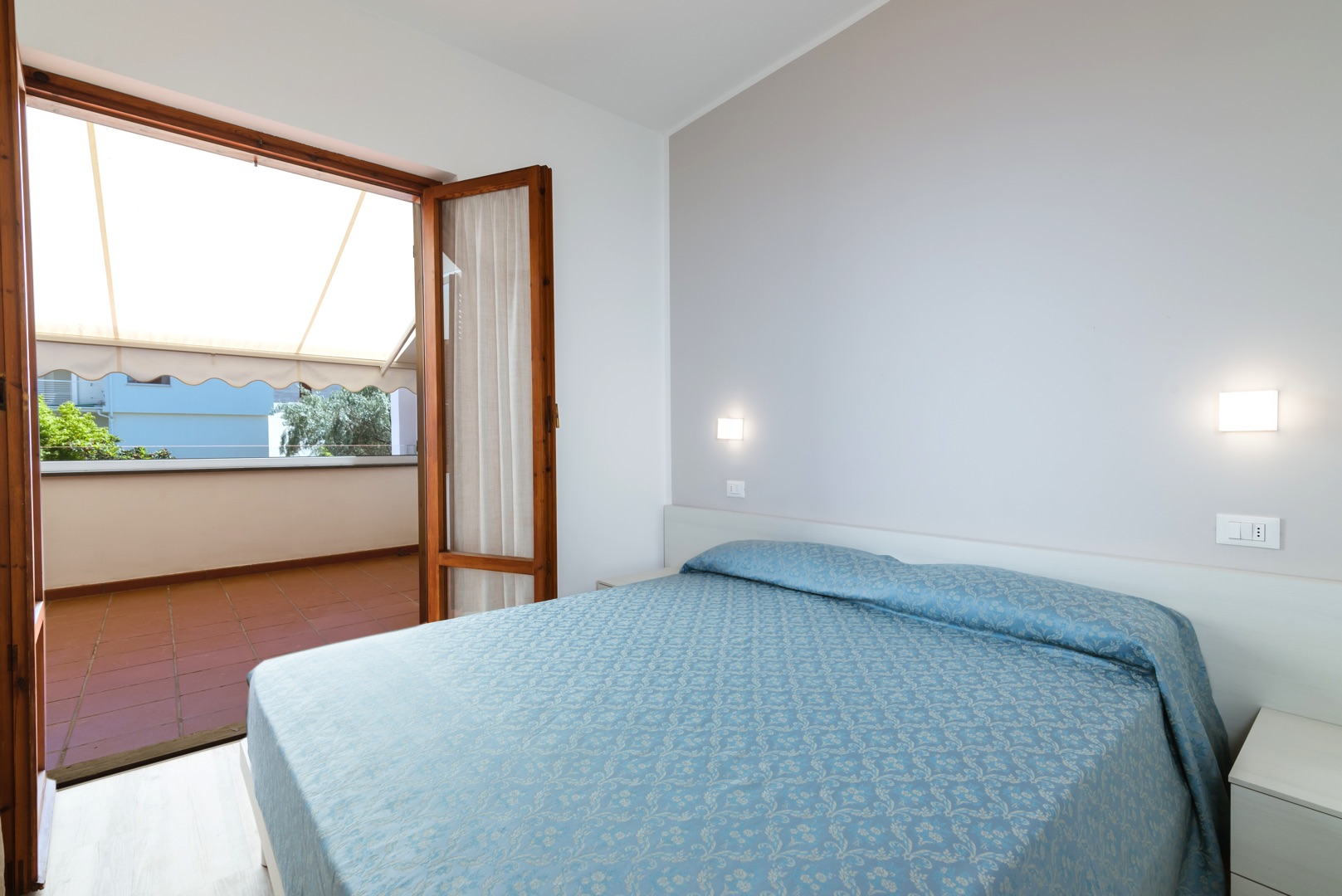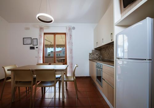 L'appartamento è composto da una camera con letto matrimoniale, una camera con due letti singoli e un bagno con finestra e tutti i comfort (lavandino, doccia, bidet e WC). Soggiorno con divano letto matrimoniale e angolo cottura. L'appartamento è dotato di aria condizionata, TV, cassaforte, lavatrice e Wi-Fi. La veranda esposta a sud è attrezzata con tavolo e sedie.